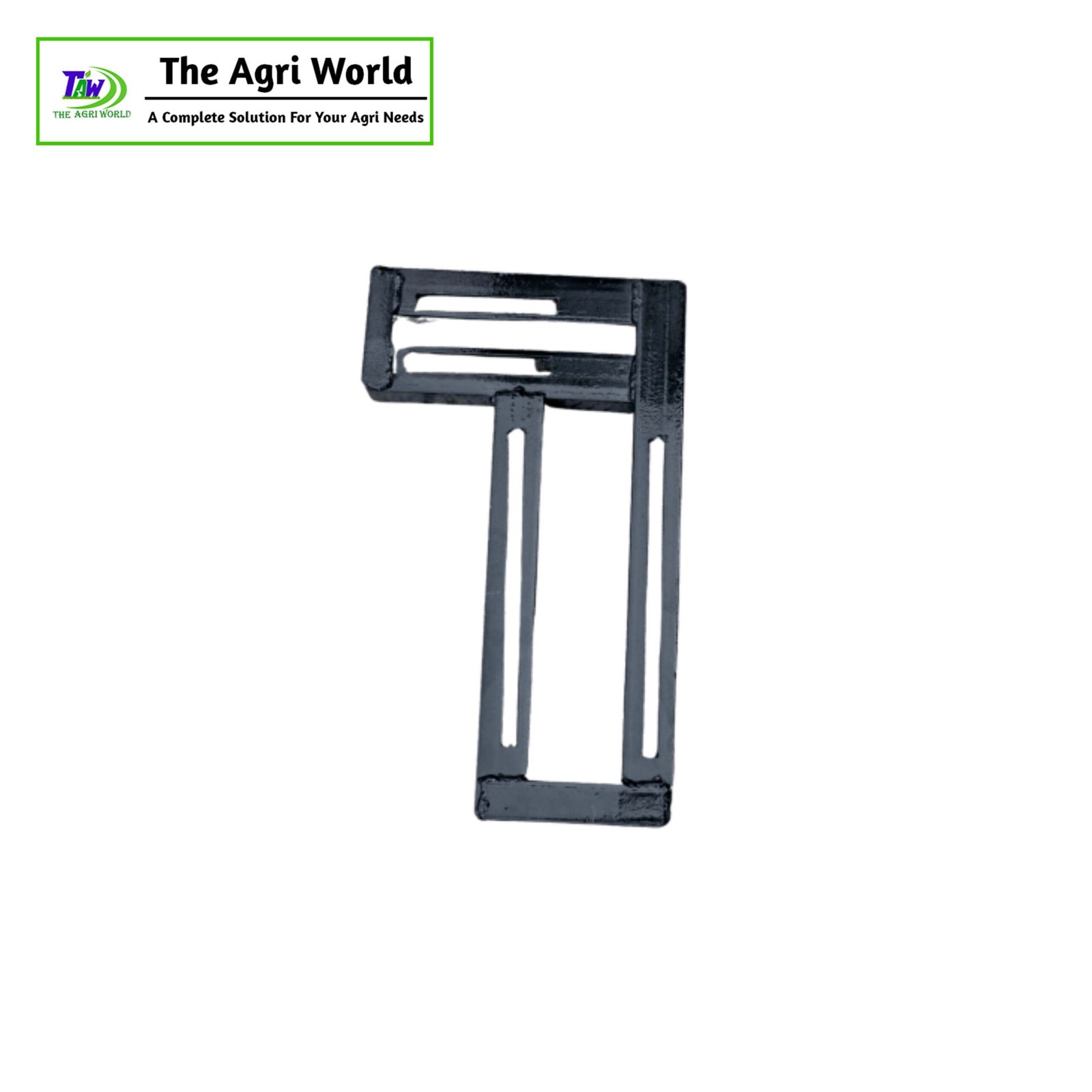 The Spray Pump Stand for a Power Weeder Attachment is a support structure designed to hold and stabilize the spray pump used for spraying pesticides or fertilizers. It is mounted on the power weeder, allowing for efficient spraying operations while ensuring the pump remains securely in place during use.